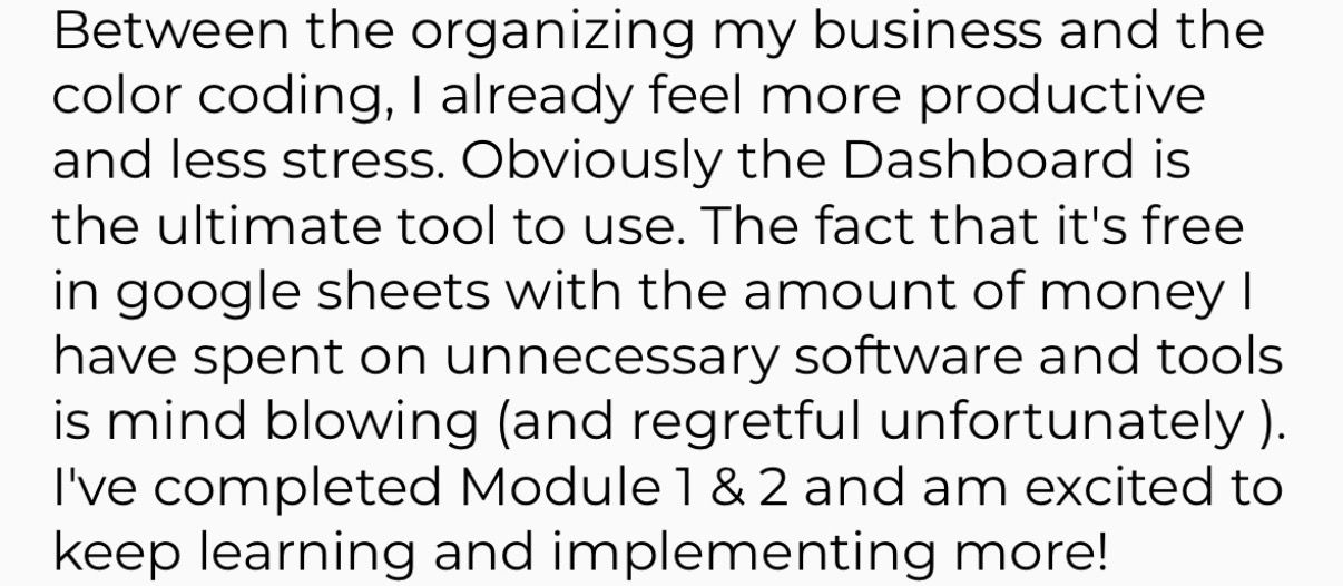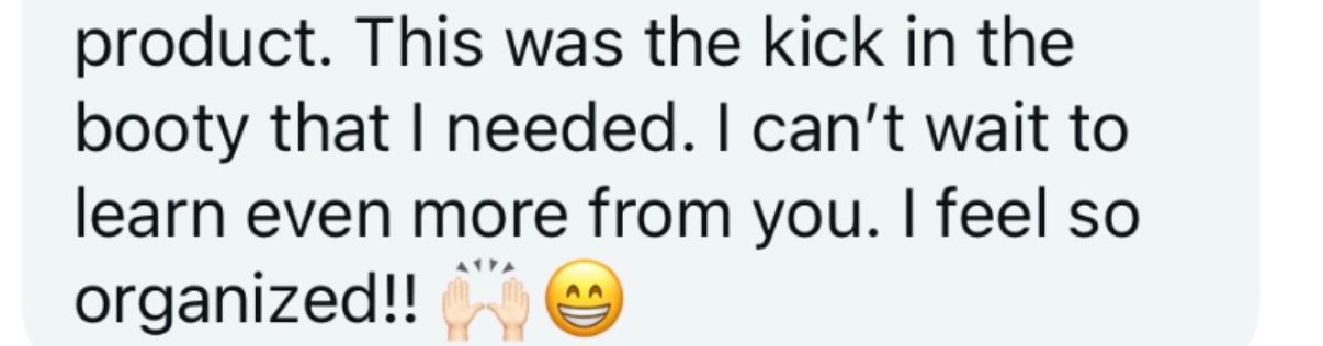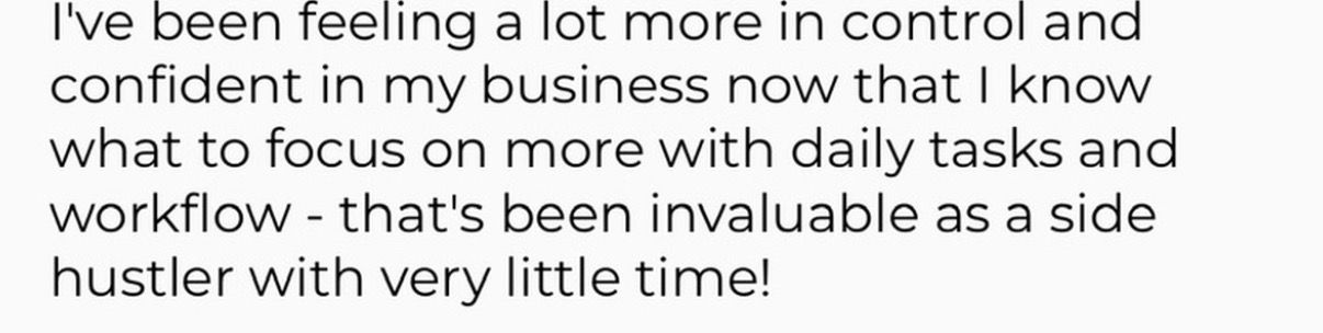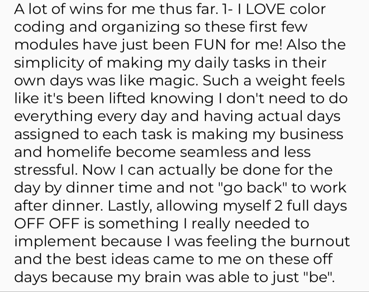 I actually feel like a business owner now. I have structure, real direction, and focus in my days where I didn’t before. I’m finally leading my business instead of letting it lead me.