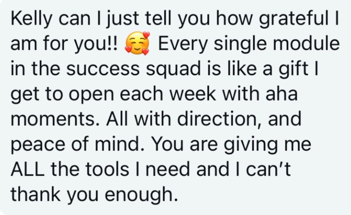 Systems + time strategies to help you scale without missing out on your beautiful personal life. I hope you join me inside the Squad so you can learn these, too.